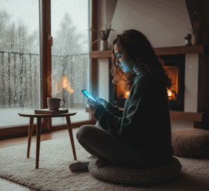 Ein gemütlicher Sonntagmorgen. Regen, Kaffee, Stille. Doch plötzlich ist da dieser fast unwiderstehliche Drang, zum Handy zu greifen. Ein Versprechen nach noch mehr Gemütlichkeit?